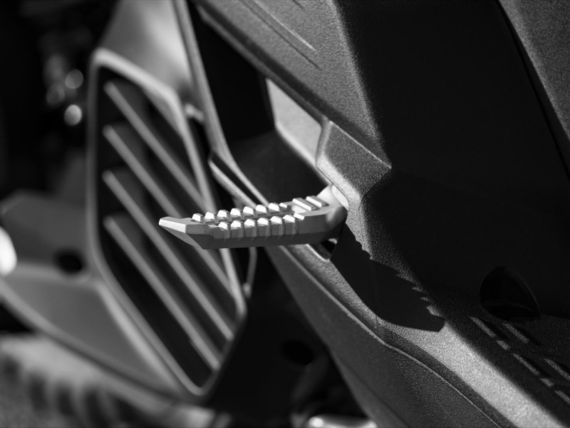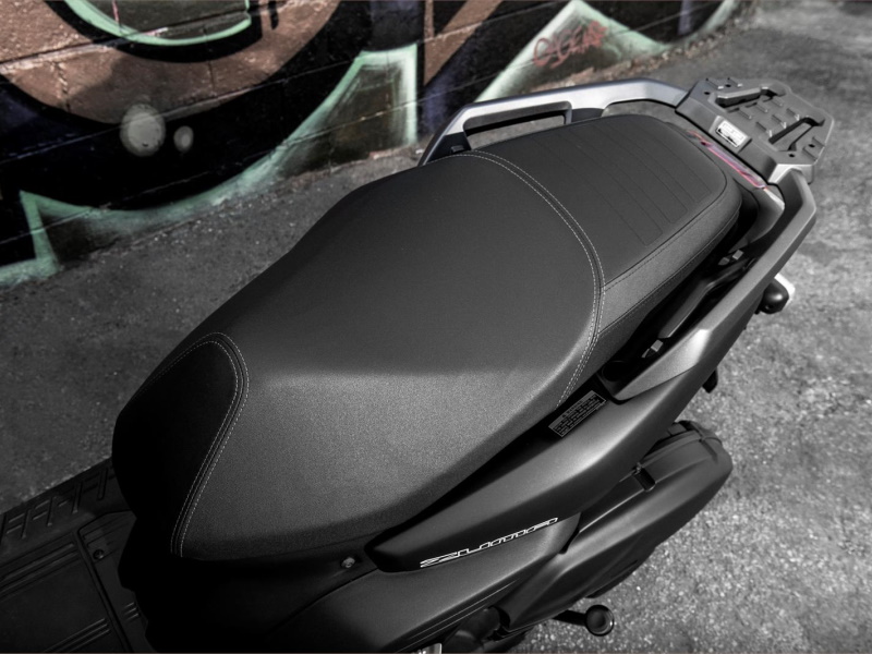 A plush and roomy riding position is ready for two, with a narrow seat design for easier flat-footing at stops, and plenty of leg space in front of the rider's seat. Meanwhile, the passenger gets dedicated foldable footrests and secure handholds that blend cleanly into the Zuma 125's body design.
