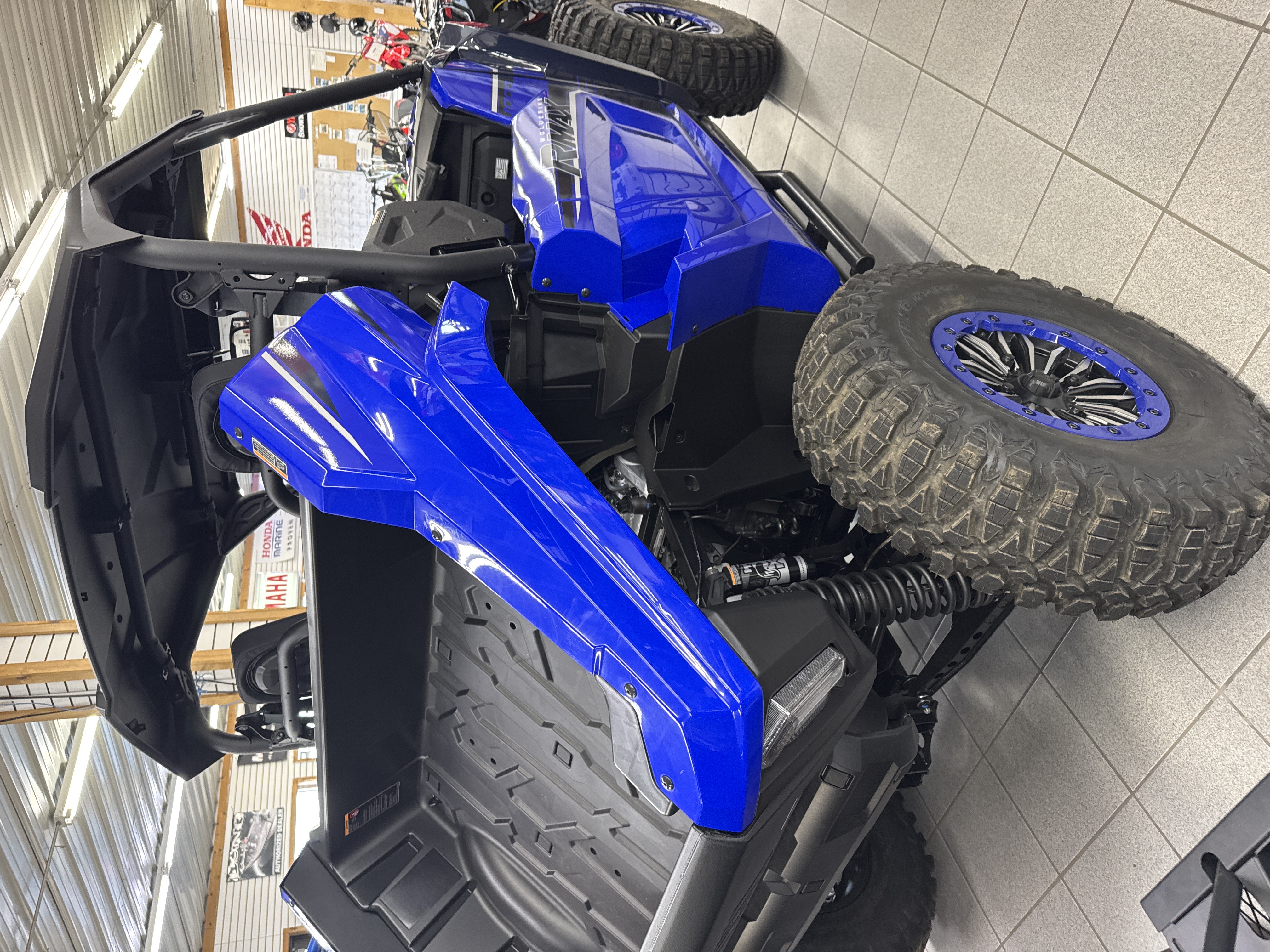 The Wolverine RMAX2 1000 Sport comes with factory-installed 14-inch beadlock wheels. With aggressive styling and bold Yamaha Blue accents they not only look great, they improve tire retention and increase driver confidence while navigating rough off-road conditions. - GBC® Terra Master Tires