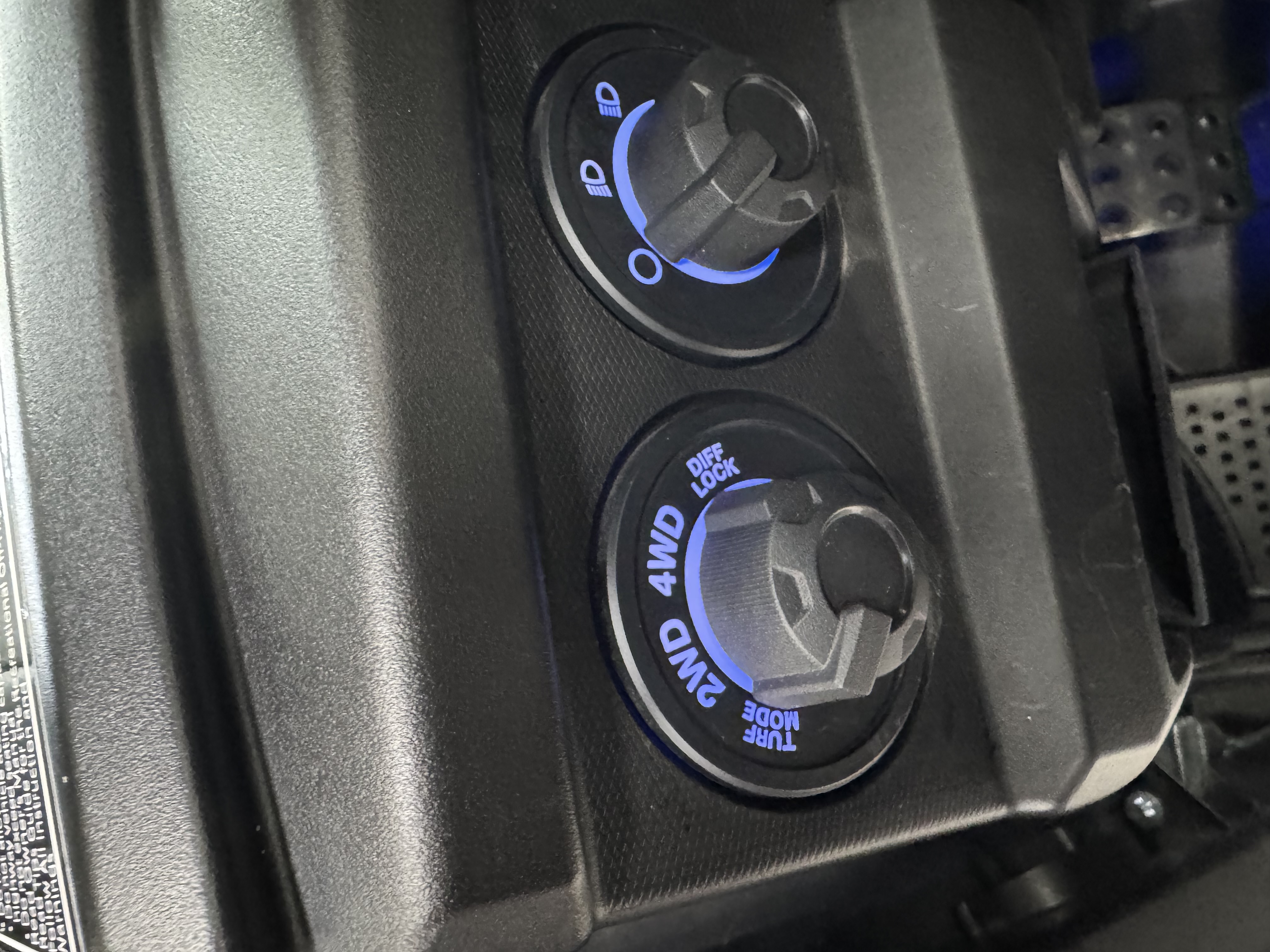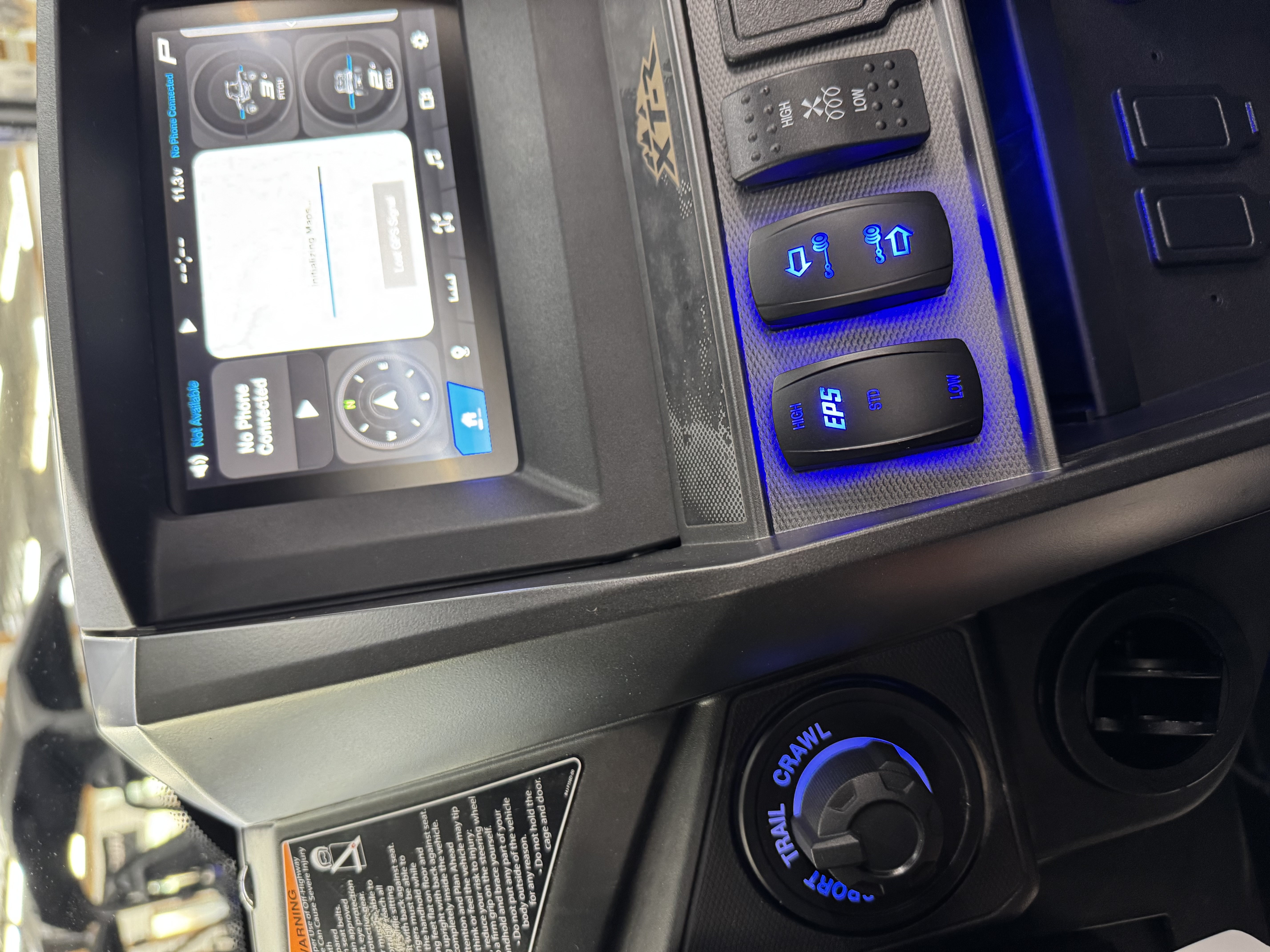 For accessibility in low-light conditions, the Wolverine RMAX2 1000 XT-R features an interior light package to easily navigate controls. The blue LED lighted switches, floor lights and console lighting complement the automotive-inspired cockpit and are color-matched to the blue-backlit meter for a high-quality feel and premium look. - XT-R Package