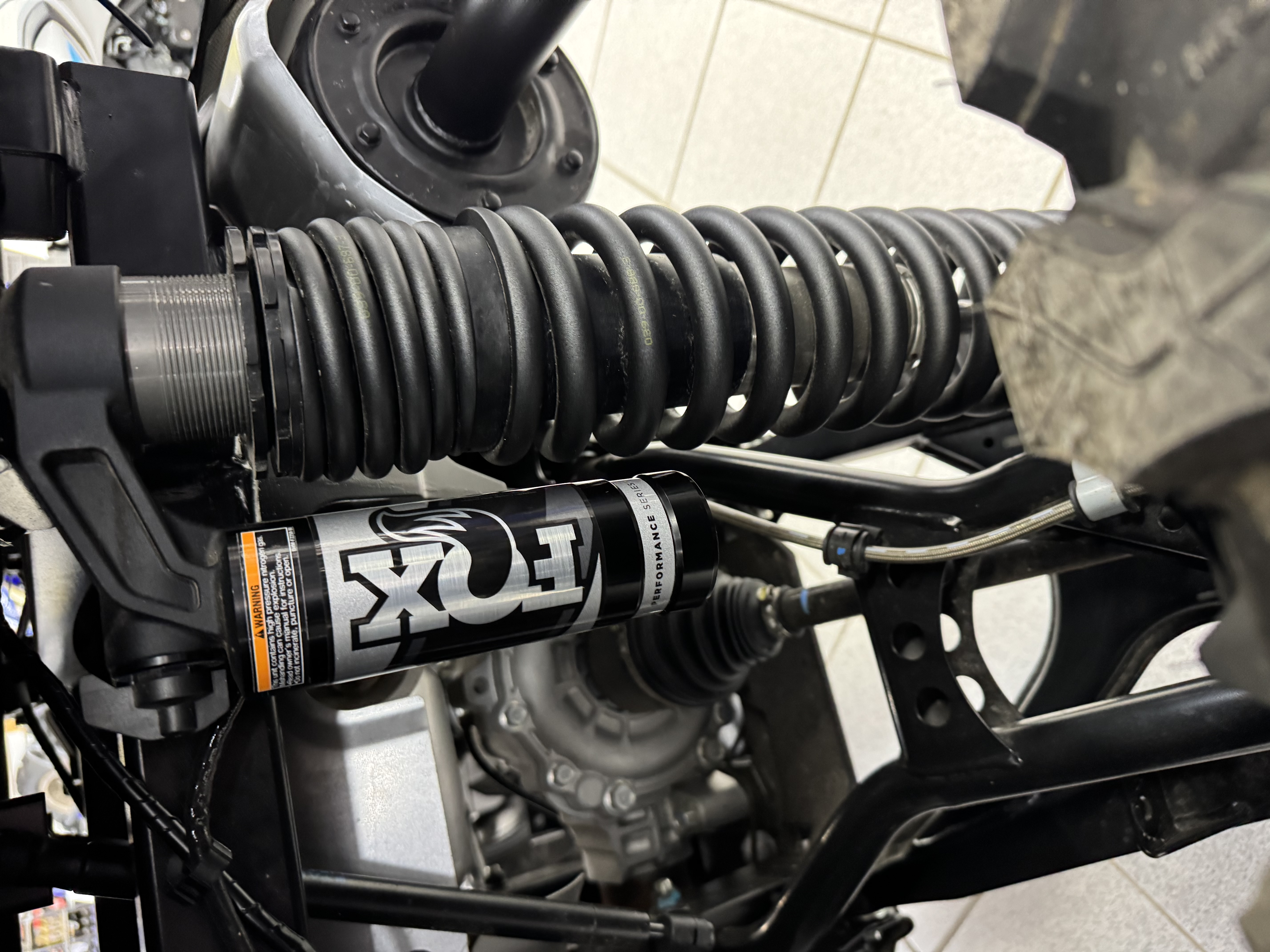 Independent double wishbone with anti-sway bar, FOX® QS3 piggyback shocks; 14.2-in travel